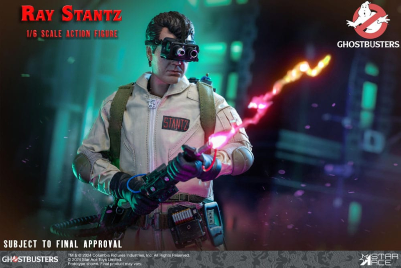 "Ghostbusters" (1984) is a classic supernatural comedy film directed by Ivan Reitman and written by Dan Aykroyd and Harold Ramis. The movie blends comedy, science fiction, and horror elements, creating a unique and enduring film that has become a cultural phenomenon.Star Ace is proud to release the legend figures of Ghostbusters in 1/6 scale collectible action figure from the movie of original Ghostbusters(1984). It features a highly detailed likeness head sculpt, tailored costumes, fully articulated body and various realistic accessories.Please don't miss the opportunity to add all these characters into your collection!The 1/6 scale Ray Stantz Collectible Action Figure features: - Highly detailed skin texture and accurate facial expressions.- 1/6 scale body (approximately 30 cm tall) with over 30 points of articulations- 1 x Pair of Hands- 1 x Gloved Hands- 1 x Pair of BootsCostume- 1 x Khaki Brown tailored suit- 1 x Black T-Shirts- 1 x Pair of Elbow PadsAccessories- 1 x set of Proton Pack equipped with The Cyclotron and Power cell which have working light operated by a switch.The Proton Gun which has working light that light up operated by a switch. (CR1632 x1pc battery cell required. Battery sold separated)- 1 x set of Proton Beam which can be assembled to the Proton Gun.- 1 x Ghost Trap (LR41 x3pcs battery cells required. Battery sold separated)- 1 x Ecto Goggles- 1 x Radio Set with Holster- 1 x yellow rubber connector- 1 x light grey pistol belt- 1 x Key Fob- 1 x 1 Belt Gizmo with Holster and 1 Daughterboard- 1 x Figure Stand Product