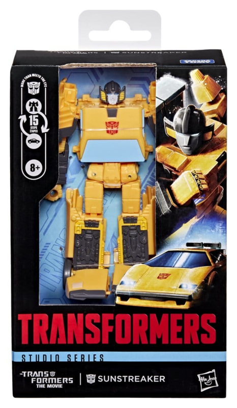 Experience the epic action of The Transformers: The Movie with the Studio Series Sunstreaker toy! The 4.5-inch (11 cm) figure converts from robot action figure to car mode in 15 steps. With movie-inspired details, good poseability, and a blaster accessory that attaches in both modes, this Transformers Sunstreaker action figure makes an awesome addition to any collection. Look for more Transformers collectible toys (sold separately, subject to availability) featuring favorite characters like Optimus Prime, Bumblebee, Megatron, and more to create a lineup that is â More Than Meets the Eye.