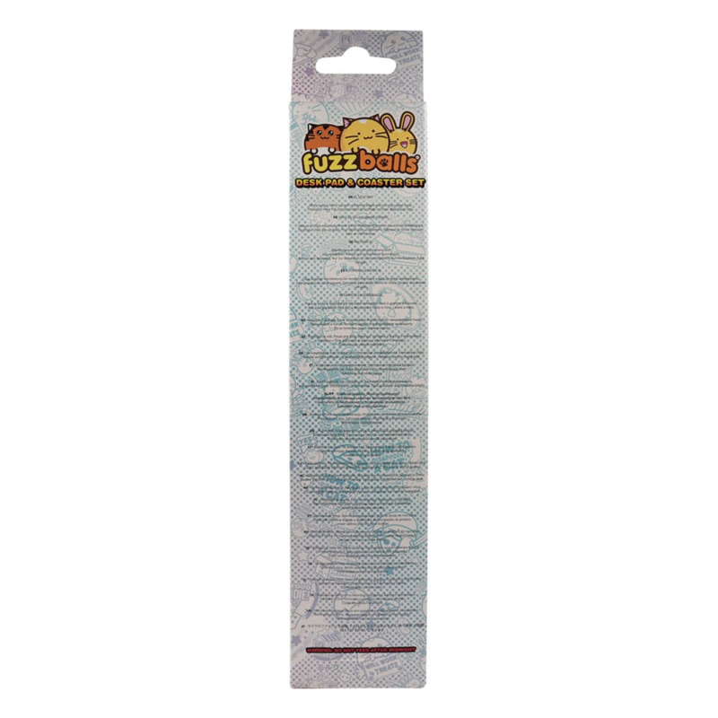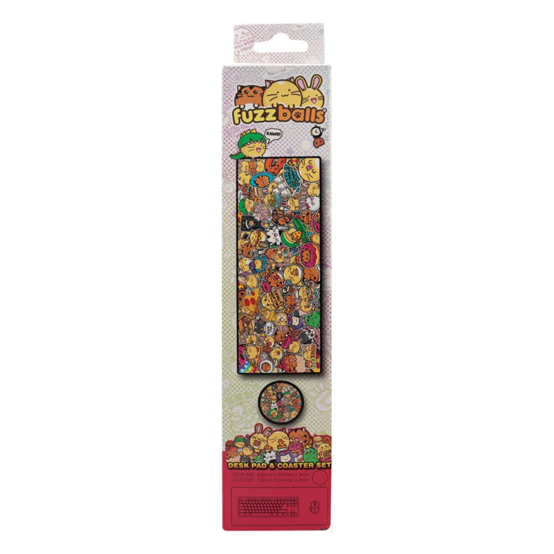 "Because every desk deserves more snacks, cuteness, and Fuzzballs! Cute up your workspace with this adorable Fuzzballs XL Desk Pad and Coaster Set! Whether you're working, studying, gaming, or just daydreaming about cookies, this set brings serious comfort and cuteness to your desk. The extra-large desk pad allows space for your keyboard, mouse, and maybe a few crumbs from your latest snack break. Made from micro-textured fabric with a non-slip rubber backing, everything stays in place... even during high-stakes clicking or coffee-fuelled typing. - Officially licensed - Reinforced edges - Non-slip base - Desk pad - 800x300x3mm - Coaster - 100mm diameter "