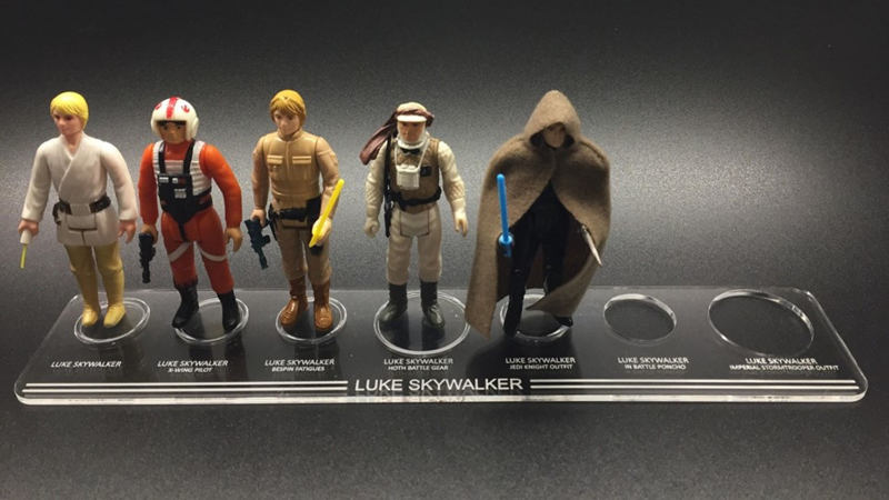 SKU: K19-11-SS-LUKE OverviewAcryl display stand voor Luke Skywalker. Een hele mooie stand waardoor de Luke Skywalker figuren prachtig op display staan. Luke Farmboy, Luke x-wing pilot, Luke bespin, Luke Hoth, Luke Jedi Knight, Luke in battle poncho en Luke in Stormtrooper outfit, ze staan prachtig naast elkaar op deze uniek display stand.