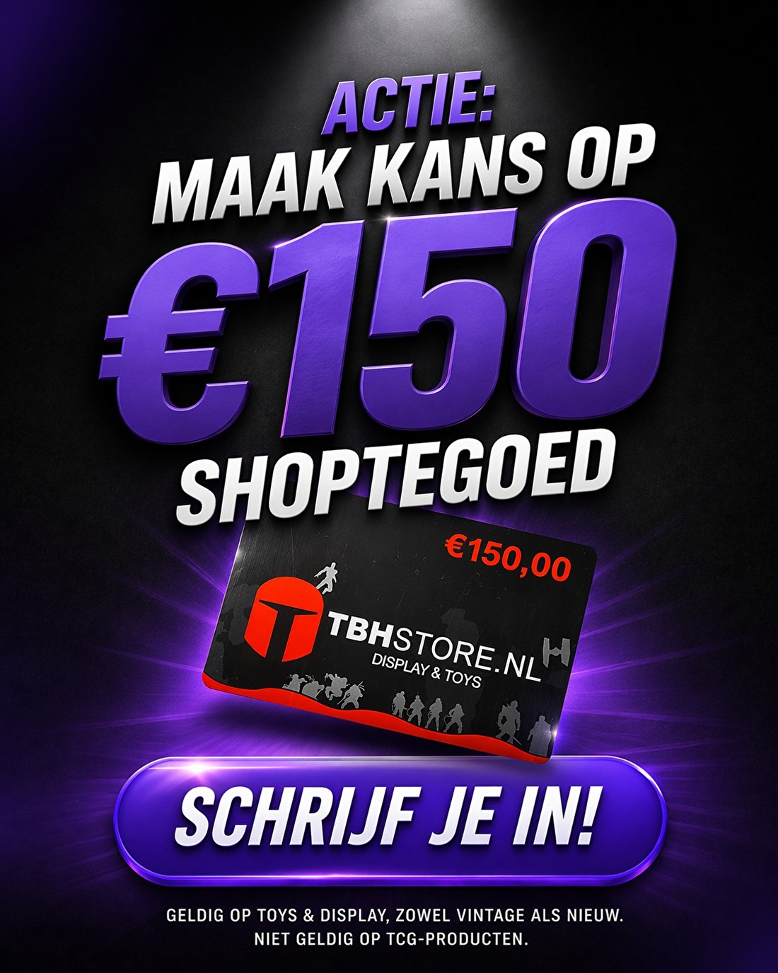 - De winnaar ontvangt shoptegoed van € 150,00. Deze is te besteden op ons hele assortiment muv TCG producten.